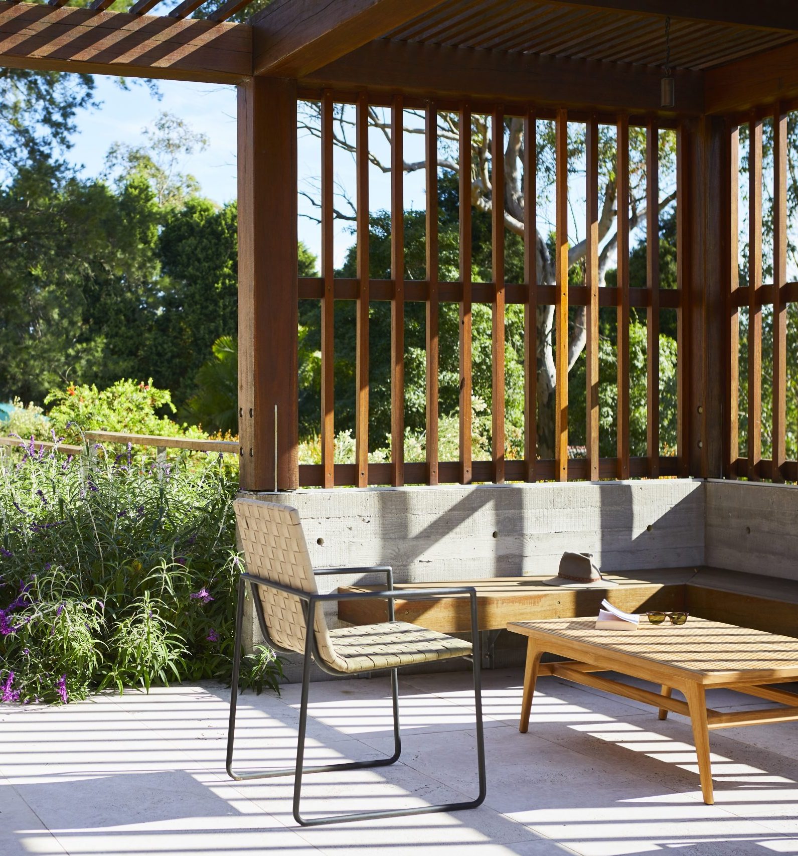 Les claustras bois permettent de briser la vue sur toute la hauteur et apportent en prime une touche très graphique pour aménager la terrasse. Pour les expositions plein sud, il offre également l’avantage de filtrer la lumière.