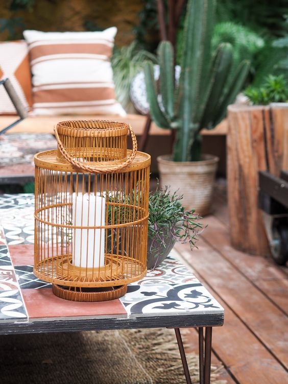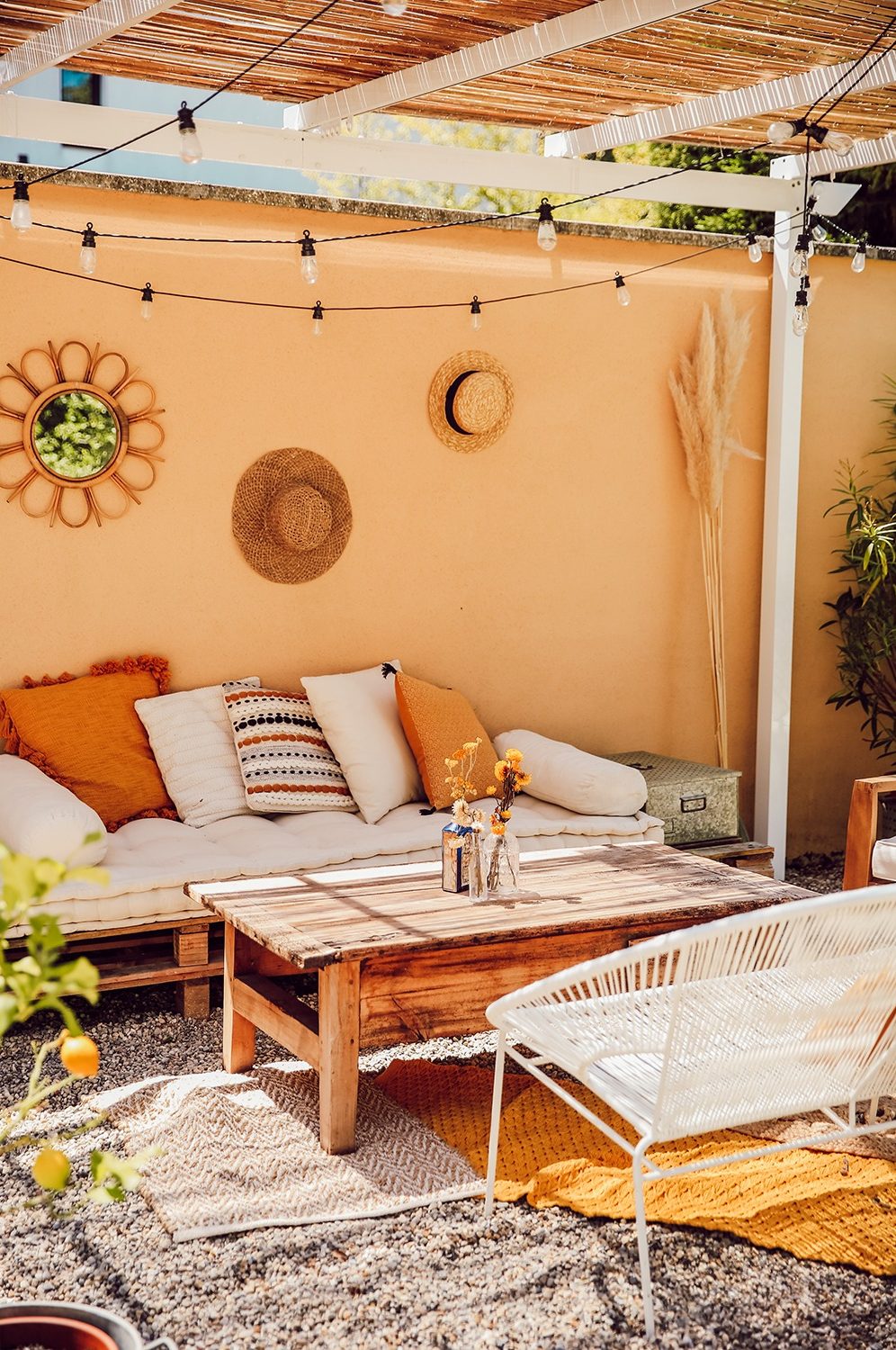 Pour terminer, on ajoute un peu de déco pour la touche finale ! Vous trouverez sans aucun doute votre bonheur parmi l’offre d’accessoires outdoor, qui est aujourd’hui très vaste. Je vous glisse tout de même mes 3 essentiels chouchou en la matière : une guirlande lumineuse, un beau tapis d’extérieur, et bien-sûr, des lanternes pour allumer des bougies le soir venu !
