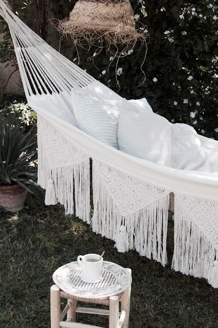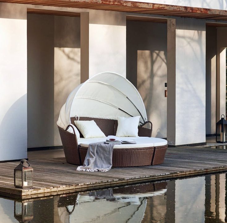 Vous êtes peut-être, comme moi, une adepte de la position semi allongée (dos légèrement inclinée en arrière et jambes tendues). Si c’est le cas, le lit d’extérieur est fait pour vous ! Si vous me suivez depuis longtemps, vous savez que je l’ai adopté dans mon jardin et que c’est mon spot préféré pendant les beaux jours ! J’ai fabriqué le mien, mais si vous n’avez pas l’âme bricoleuse, il existe aujourd’hui de nombreux modèles dans le commerce. On le choisit suffisamment large pour y tenir à deux et paresser en bonne compagnie, et avec si possible une possibilité d’ombrage. Coup de cœur pour ce lit de jardin en photo, avec ses arrondis ultra cocooning !