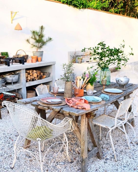 J’adore le principe du meuble maçonné. Vous pouvez le réaliser en béton traditionnel ou cellulaire. Son plan de travail peut également servir de cuisine d’été. Autre idée, le placard façon cabane de jardin, comme sur la petite terrasse de Lili in Wonderland. Aussi pratique qu’esthétique avec la petite note bucolique qu’il apporte à l’espace.