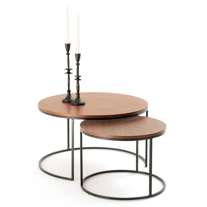 2 tables basses gigognes métal et noyer, -45%, 220,04€ / Cube table miroir, -15%, 126.98€