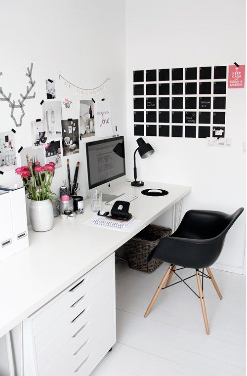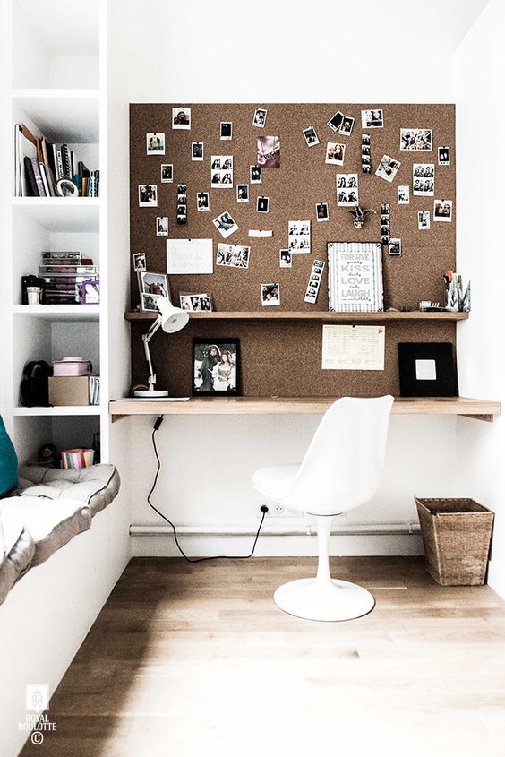 Pour finir, on pense bien-sûr à ajouter la touche déco, celle qui donne envie de s’installer à son bureau ! Au delà des cadres, tapis et jolis accessoires, on peut par exemple miser sur de la peinture ardoise, ou encore délimiter l’espace bureau avec un rectangle de peinture. Les pegboards sont aussi des éléments déco qui s’avéreront très pratiques, tout comme le mur de liège pour y épingler ses idées.