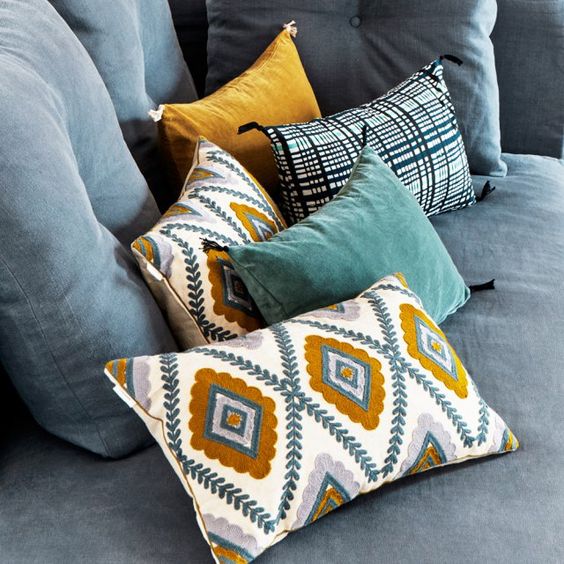 Lorsqu’on ne peut pas changer les meubles mais que l’on souhaite changer de déco, miser sur de nouveaux éléments textiles permet de twister l’ambiance à moindre coût ! Des nouveaux rideaux, des coussins à motifs, ou encore un tapis pour réchauffer un sol peu engageant suffisent bien souvent à planter un nouveau décor.