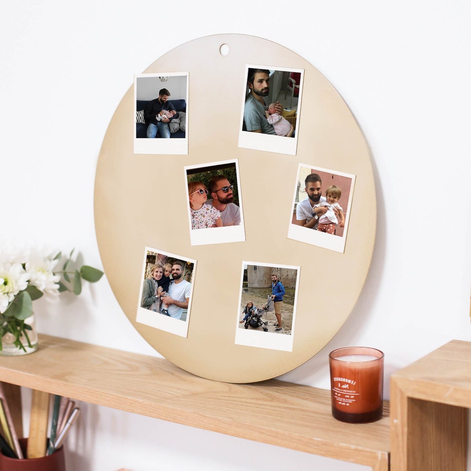 Il est aujourd’hui possible de transformer vos photos en magnets en quelques clics. Vous pouvez évidemment les utiliser sur votre frigo, mais pas que ! Un panneau magnétique vous permettra notamment de décorer votre maison élégamment en y apposant vos photos aimantées. Cet option s’avère très pratique pour changer la déco au gré de ses envies. Autre option, le panneau de liège ! Imprimez des photos en format polaroid, épinglez-les en y associant par exemple de jolis papiers, et vous obtiendrez un « mur de souvenir » ultra poétique.