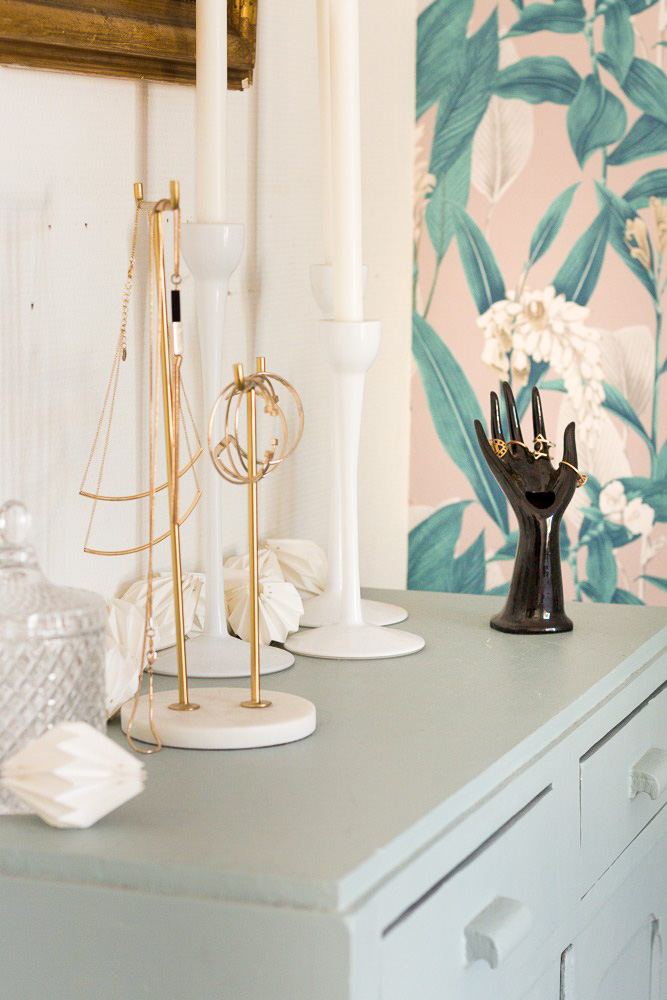 Parfois, on est attaché à un objet mais on n’a plus l’utilité de son usage initial. Avant de le reléguer au fond d’un carton, pensez à le détourner ! Des jolis flacons anciens peuvent ainsi devenir des soliflores ou des bougeoirs, Un vase se transformera en pot à ustensiles dans la cuisine, une saucière en vide poche, etc. En ce qui me concerne, j’utilise par exemple depuis des année ce soliflore main des années 60 pour ranger mes bagues.