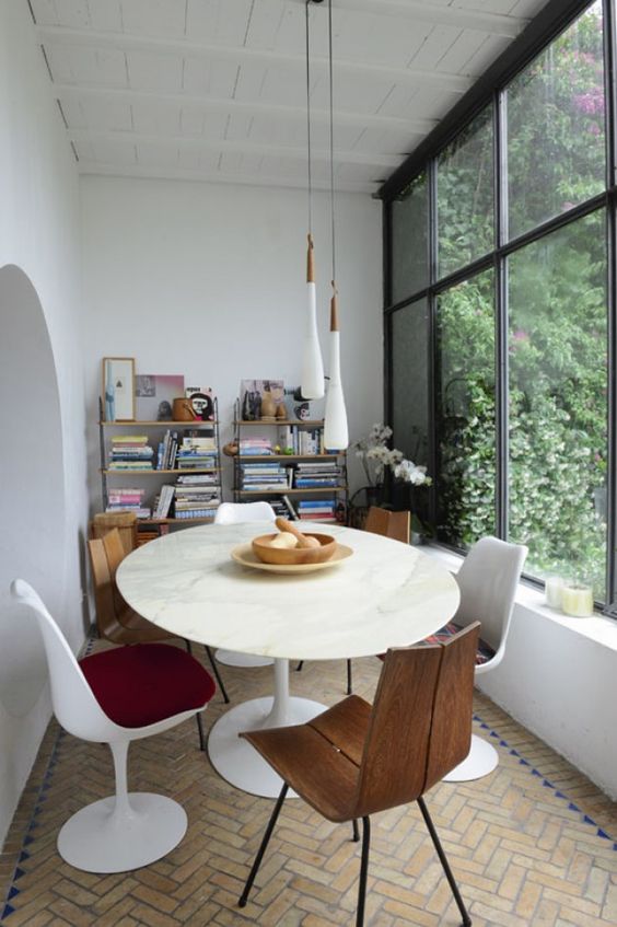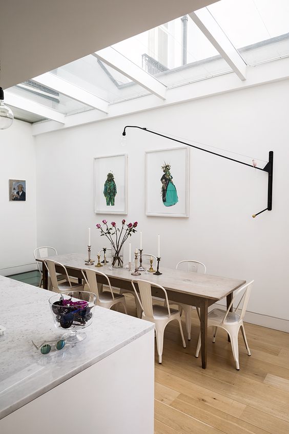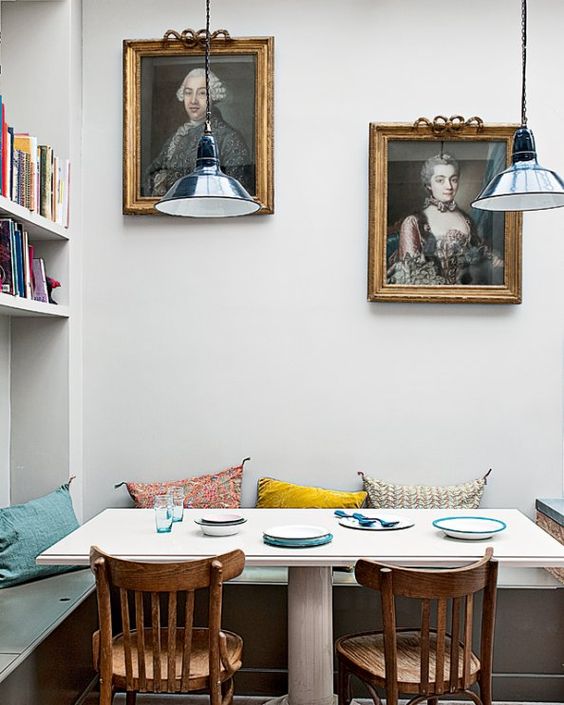 Les chaises sont un moyen facile de donner le ton en déco. On peut ainsi aisément les mixer, les twister, et changer le décor en un tour de main. En la matière, il existe deux écoles : les adeptes des chaises assorties, et ceux qui au contraire ne jurent que par l’option dépareillée. Autre idée intéressante pour le gain de place qu’elle offre, la banquette fait ainsi des apparitions remarquées dans les plus beaux intérieurs. Elle permet notamment d’offrir un espace de rangement supplémentaire avec un coffre sous l’assise, très utile pour les petits espaces.