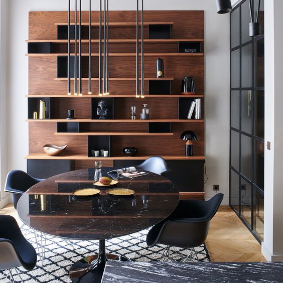 Bonjour, merci beaucoup pour ce partage de superbe idées ! Je suis fan de la table ronde de salle à manger avec les chaises noires. Savez-vous comment s’appelle le style, afin que je puisse chercher un modèle similaire? Merci beaucoup