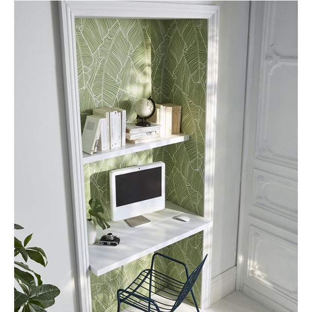 On continue notre petit tour dans les GSB avec Castorama cette fois, qui propose un papier peint feuillage résolument graphique : proposé en taupe et en vert, ses grandes feuilles de bananier proposent un motif moderne et épuré au tout petit prix de 16,95 euros. Disponible ICI.