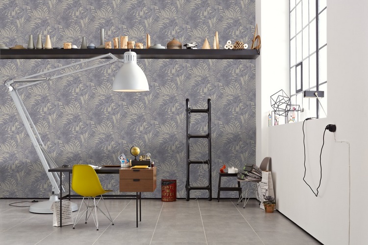 Même fabricant mais autre style et autre ambiance, avec ce papier peint qui est un de mes coups de cœur ! Décliné dans différentes teintes, le bleu est incontestablement ma préférée, pleine de délicatesse, pour une atmosphère urban jungle douce et fraiche ! On peut le trouver sur ebay ICI au prix de 22 euros le rouleau.