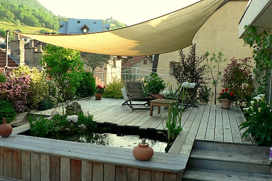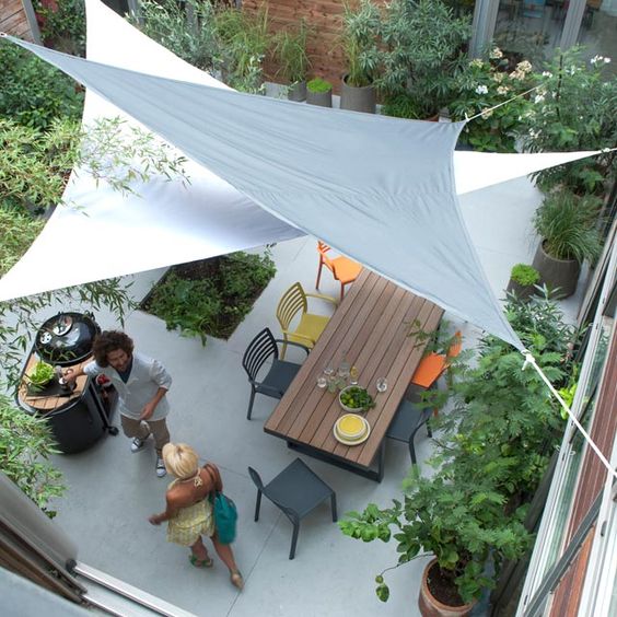 - la voile d’ombrage : en plus d’offrir un coin d’ombre, la voile d’ombrage est idéale pour se cacher des étages supérieurs ! façon baldaquin ou triangle, on peut même en superposer plusieurs !