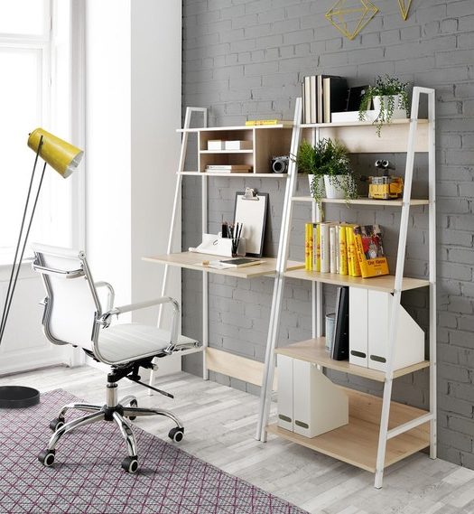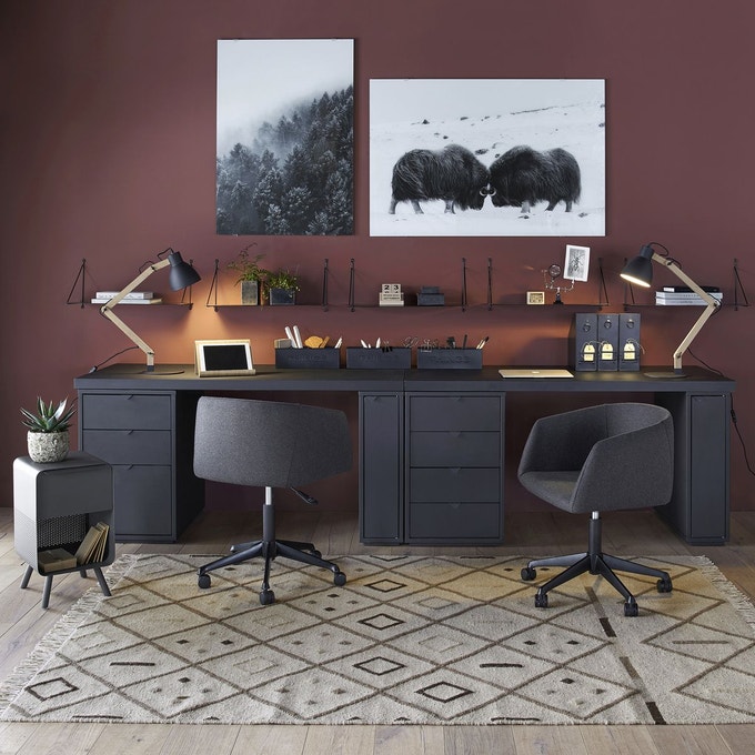 Superbe idées avec le bureau étagère et le bureau d’angle! Le plateau avec les commodes en tant que socles est également très astucieux. Des idées à garder en tête!