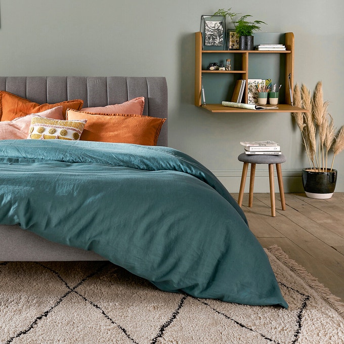 Si la taille de la chambre vous le permet, l’option bureau-bibliothèque offre de nombreux avantages. En plus d’une capacité de stockage important, il permet d’alterner les rangements fermés et ouverts. L’astuce pour l’intégrer au décor, utiliser une partie des étagères pour y exposer de la jolie déco !
