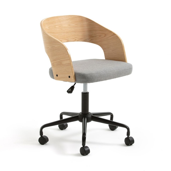 Fauteuil de bureau rotatif à roulettes avec hauteur réglable, dossier bois//
