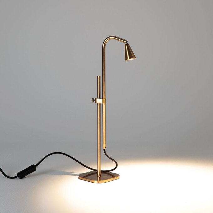 Lampe en laiton à tête orientable et hauteur réglable// Lampe articulée finition laitonnée