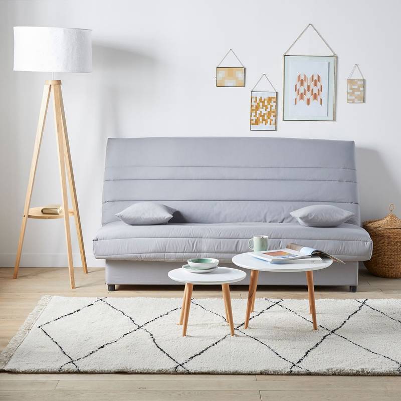Mobilier incontournable du studio, le canapé lit est LA solution si la pièce ne vous permet pas d’avoir un coin nuit. Le clic clac se déplie en un tour de main et offre un bon confort pour les petits budgets, tandis que les canapés lits proposent une esthétique élégante et discrète. D’ailleurs, si vous cherchez un canapé convertible qui a tout d’un grand, vous trouverez ma sélection dans cet article ! Pour transformer facilement un salon en coin nuit, les tables basses aussi doivent être soigneusement choisies. La règle ? Quelles soient légères et faciles à manipuler, tout en offrant une bonne surface utile. Pour cela, les tables gigognes ont tout bon !