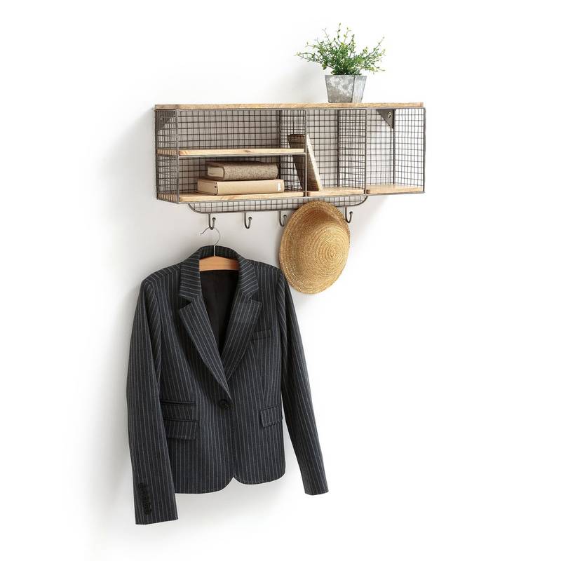 Case murale patères / Portemanteau bois avec tablette / Miroir portant