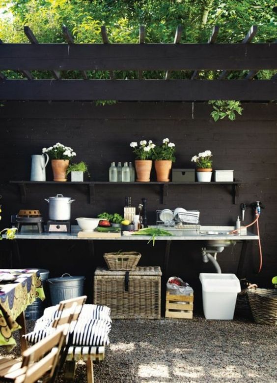 Les cuisines d’été m’ont toujours fait rêver. Je trouve ça tellement agréable de pouvoir cuisiner dehors, en étant près de ses convives ! Elles offrent également l’avantage non négligeable d’éviter les aller retours dans la maison pendant les déjeuners. Si l’idée vous tente, sachez qu’aménager une cuisine d’été agréable est plus simple qu’il n’y parait ! Si vous possédez un appentis, ainsi qu’une arrivée d’eau et d’électricité, et que vous êtes bricoleurs, c’est évidemment un plus. Mais il existe également d’autres solutions plus nomades et faciles à mettre en œuvre pour réaliser une cuisine d’été jolie et pratique. Suivez le guide !