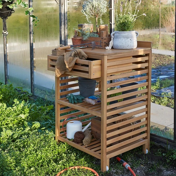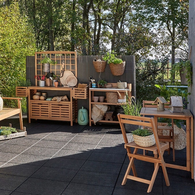 Autre alternative, les tables de jardinage et meuble d’extérieurs permettent de prolonger le plan de travail ou de le remplacer. Si vous aimez jardiner, elles sont une solution intéressante, puisque vous pourrez aussi les utiliser hors saison pour réaliser vos semis ou rempotage.