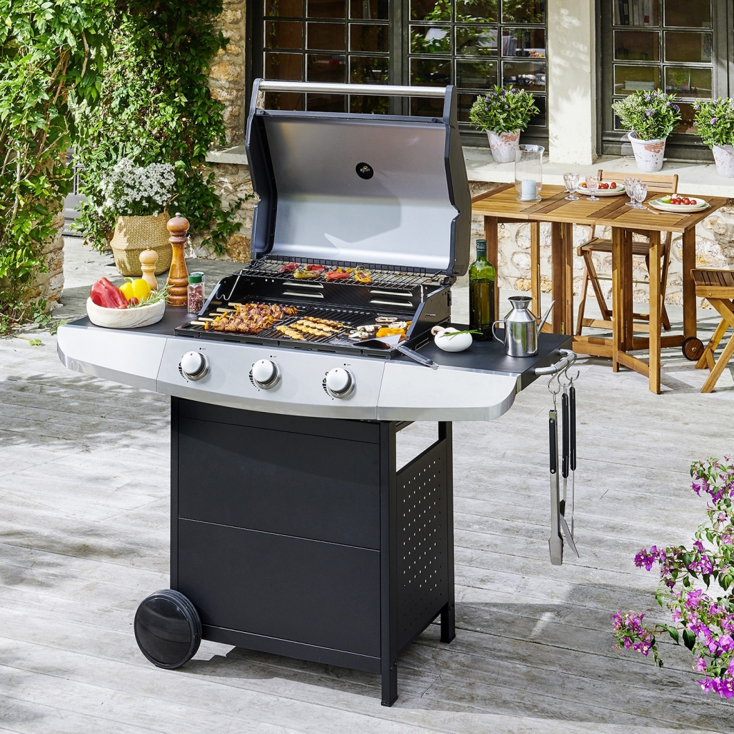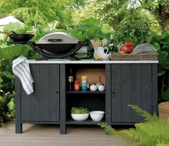 Selon le mobilier de votre cuisine d’été, vous pourrez opter pour un barbecue à poser ou un modèle sur pied, qui a l’avantage d’offrir des tablettes pour votre vaisselle et ustensile.