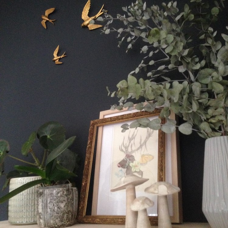 Ces hirondelles dorées sur ce mur noir c’est tellement poétique… Et la table basse est juste parfaite. Félicitations pour cette douce harmonie!