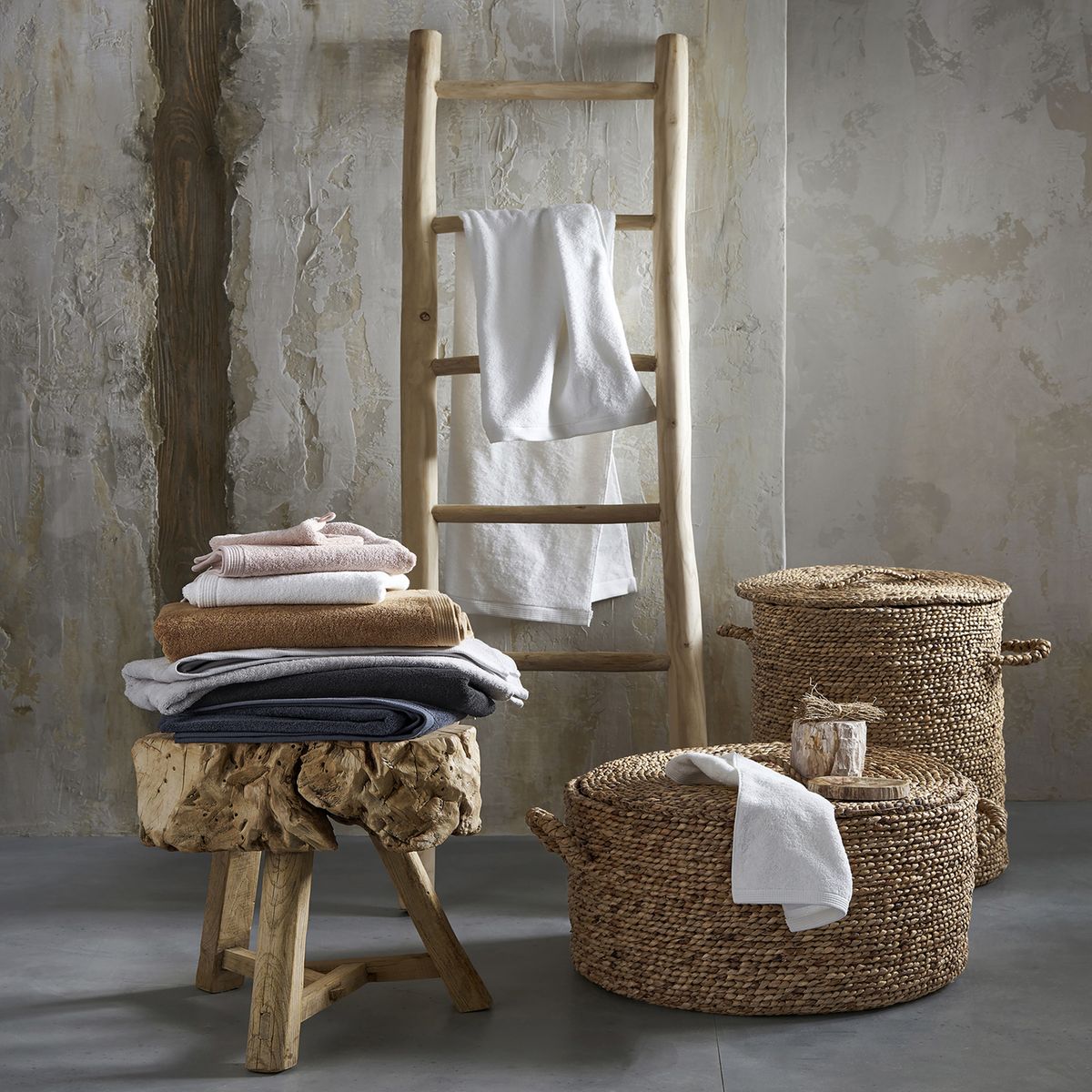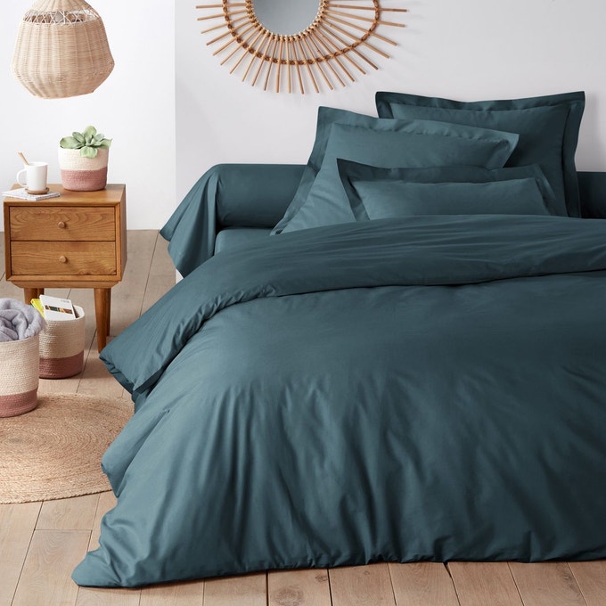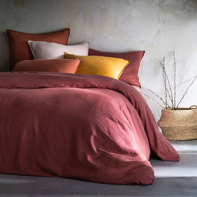 Housse de couette coton lavé Monille, (35%), à partir de 21.44 euros — Panier rond jacinthe d’eau Lian, (-25%), 59.25 euros
