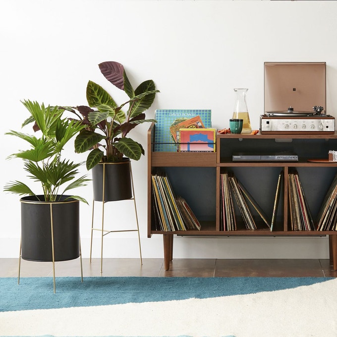 Étagère basse acier, 2 fonctions, HIBA, (-31%), 179 euros — Cache-pot en céramique SAKINA, (-30%), 17.50 euros