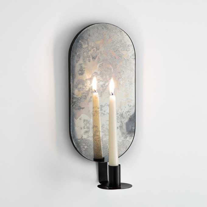 Cache-pot sur pied INAYA métal et laiton, (-35%), 38.99 euros — Miroir manguier massif Afsan, (-35%), 116.99 euros