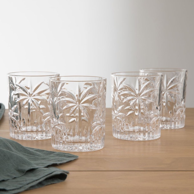 Lot de 4 serviettes de table coton lavé Louisa (-25%), 12.74 euros — Lots de 4 verres ciselés PALEM , (-30%), 11.19 euros.