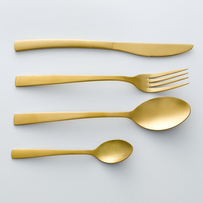 Nappe lin lavé, Victorine, (-30%), 38.49 euros — Couverts Auberie, doré, par lots de 4