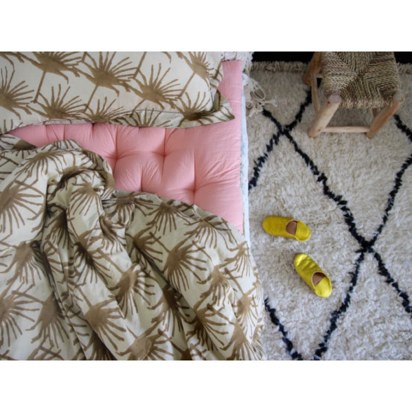 J’ai totalement craqué sur le beau linge de maison « Bonjour », d’Anne Millet, styliste et photographe de talent (auteur du célèbre blog mobil-home) qui vient de sortir sa collection été. On y trouve des petits habits, mais surtout du beau linge de maison, et c’est un vrai régal pour les yeux ! Du linge de lit, des petits matelas, des édredons et boutis, des nappes, des serviettes, des sets de table, aux noms aussi poétiques que ses photos. Des tissus handblock indiens entièrement dessinés par Anne Millet, et déclinés sous 4 collections : Green paradise (ma préférée), Gold paradise, Nuit étoilée et ciel de Nîmes.
