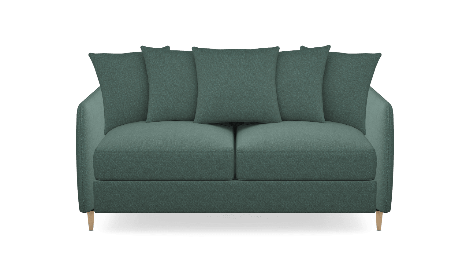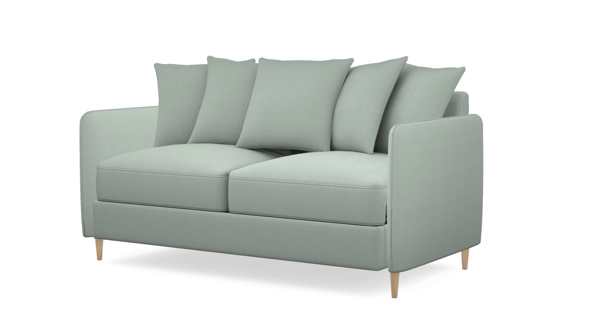 J’ai opté pour des accoudoirs fins, j’aime beaucoup le résultat visuellement et je voulais que l’ensemble reste léger puisque le canapé se trouve au milieu de la pièce. Pour les pieds, j’ai choisi les pieds en hêtre clair Ficelle, pour s’accorder aux autres tonalités de bois déjà présentes dans le séjour.