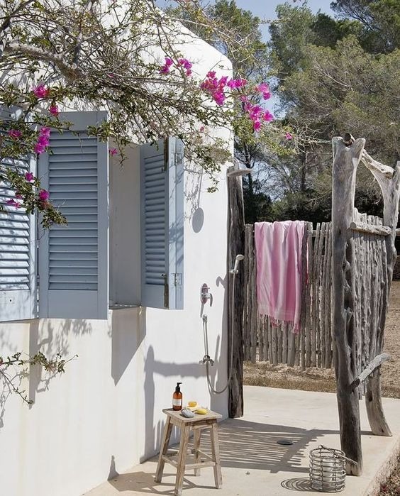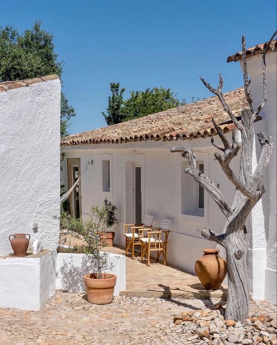 Ce que j’appelle le style méditerranéen rustique, ce sont ces atmosphères de petite maison de vacances sous le soleil, où la décoration nous parle d’un mode de vie. C’est la cabane en pierre ou l’on vient chercher la fraicheur, avec ses murs blanchis à la chaux, son sol en terre cuite, son mobilier rustique et ses matériaux patinés et imparfaits. C’est la maisonnette simple et parfaite pour les vacances dans le sud de la France, sur la côte espagnole ou la campagne d’Algarve, avec ses fenêtres colorées et ses canisses tendues sur une pergola pour ombrager la terrasse.