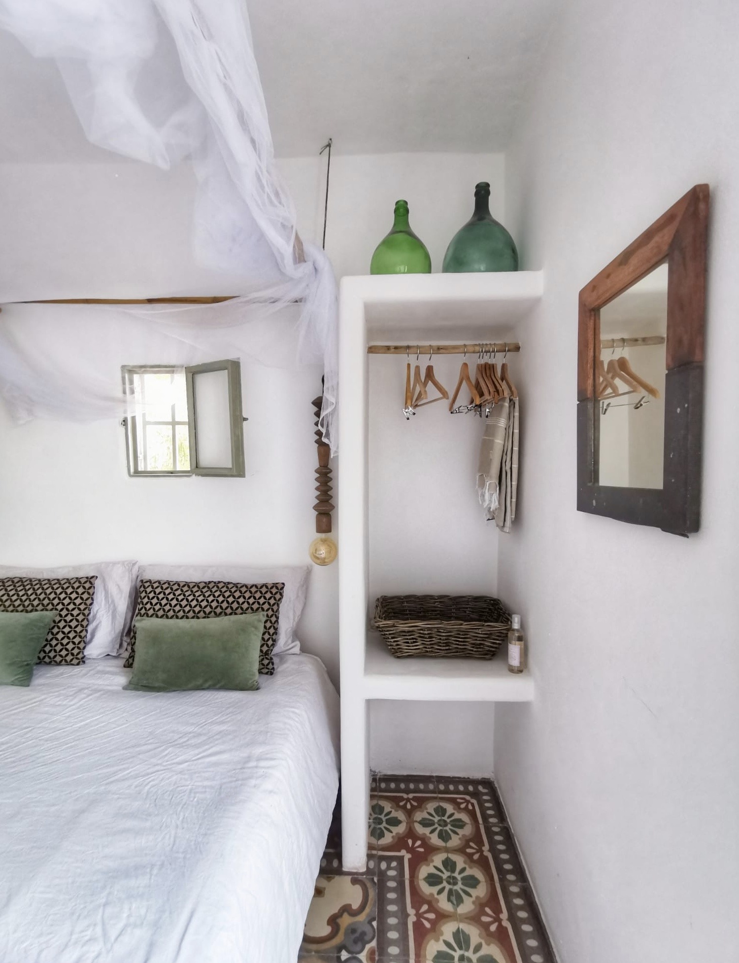 Vous voulez donner une forte personnalité à votre chambre ? Osez les détails typiques pour une chambre qui vous fera voyager ! Pour jouer à fond la carte du style méditerranéen rustique, misez par exemple sur un mur de pierres enduit à la chaux, des tomettes au sol, ou encore des volets intérieurs en bois. Et pourquoi pas, des canisses au plafond !