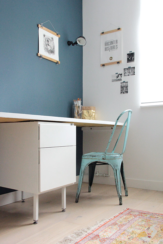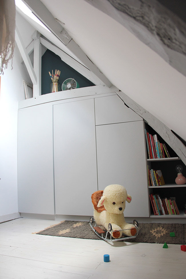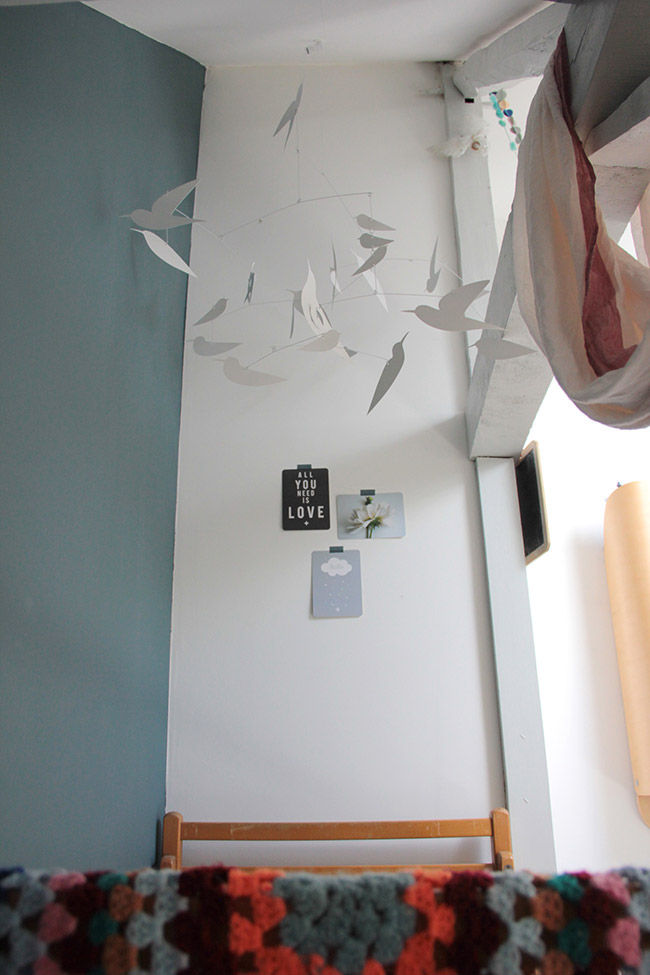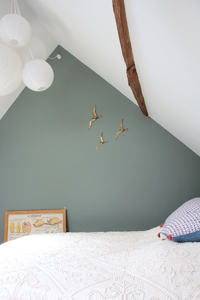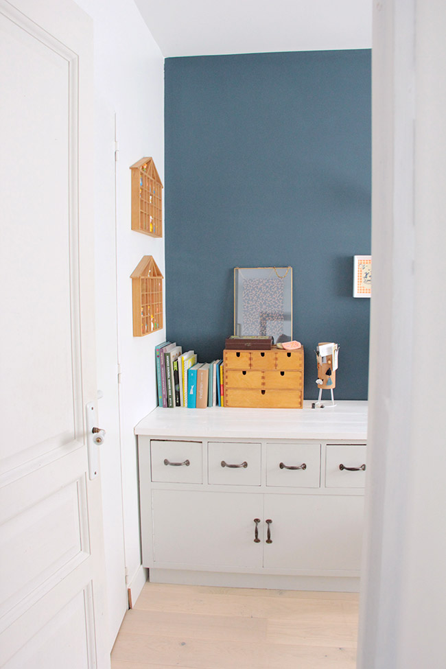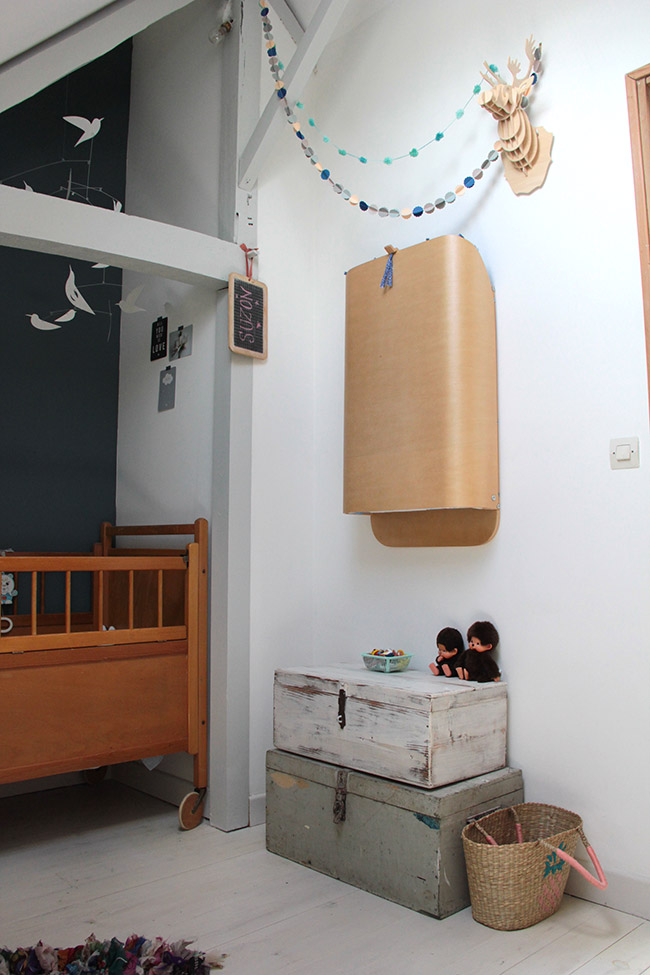Les pièces que j’affectionne le plus sont ma chambre, celle de ma fille et mon bureau. Ma chambre car on a mis du temps à décider de l’aménagement et aujourd’hui on s’y sent tellement bien. C’est un véritable havre de paix. La chambre de ma fille car comme tu peux l’imaginer, j’ai mis énormément de cœur à l’aménager, à penser chaque détail, à chiner le petit lit, à dessiner la penderie, à choisir les couleurs, les matières… tout devait être parfait pour l’arrivée de ma fille Suzon !