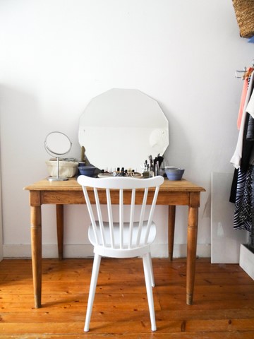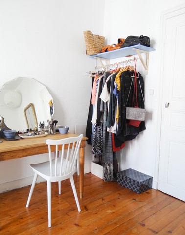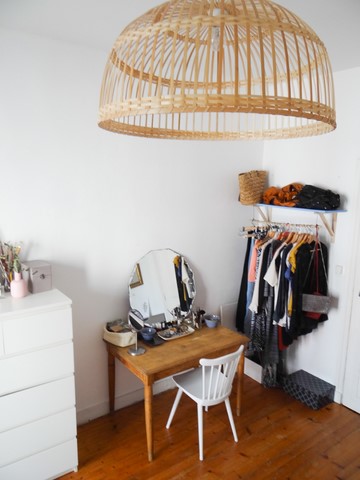 Il y a quelques temps, je vous montrais un petit coin de ma chambre en vous proposant un DIY pour aménager un dressing ouvert. Aujourd’hui on continue donc la visite ! J’ai la chance d’avoir une grande chambre dans laquelle j’ai pu installer ce petit coin dressing, mais aussi une table ancienne avec un miroir biseauté chiné en guise de coiffeuse, une grande commode du suédois bien pratique, et même le piano durant l’hiver (l’été, il cache le radiateur moche dans le salon). J’ai décoré la pièce petit à petit, il me reste maintenant à trouver de jolies lampes de chevet, et peut-être une aussi une belle tête de lit, mon envie du moment !