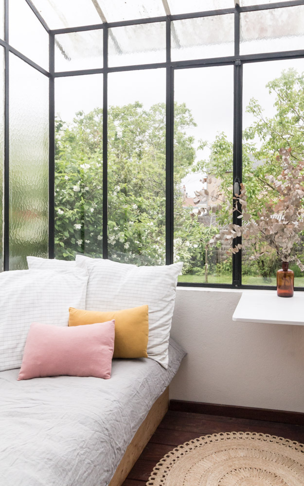 La petite véranda est l’endroit idéal pour se poser avec un livre et un thé en contemplant le jardin.