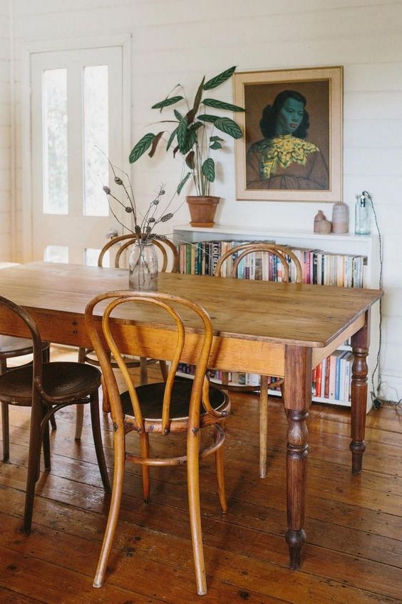 Vous vous en doutez, le bois est LA matière à privilégier pour une salle à manger style campagne. Mais le secret, c’est aussi de la mixer avec d’autres. La terre cuite, l’osier, ou encore quelques touches de métal seront ainsi parfaits pour créer une ambiance feutrée.