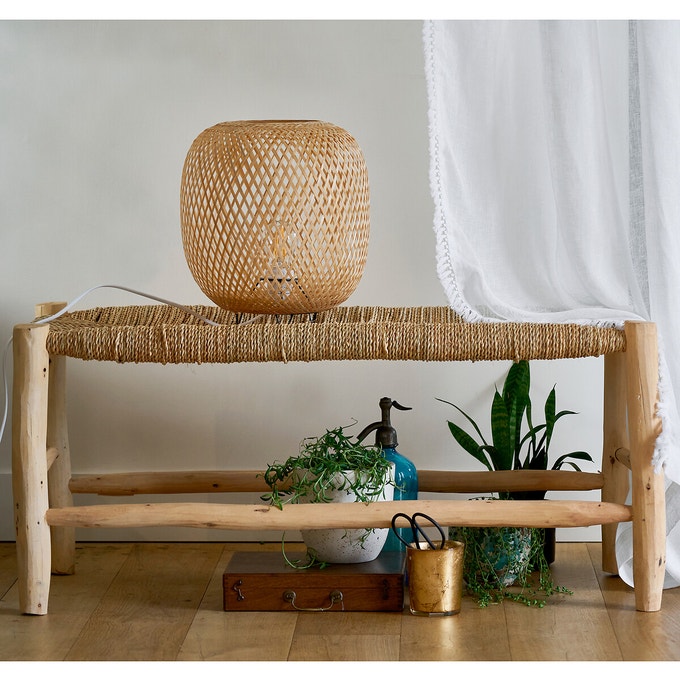 Déco murale éventail en bambou / Banc en doum tressé / Pouf en jute