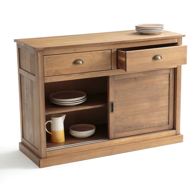 Matelas de sol rayé / Buffet 2 portes /Table d’appoint rotin Drawer