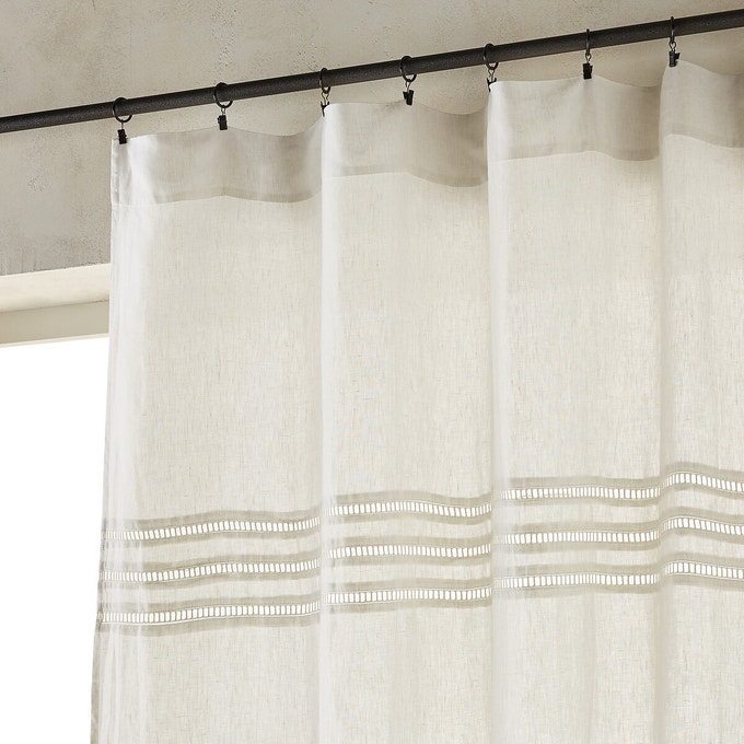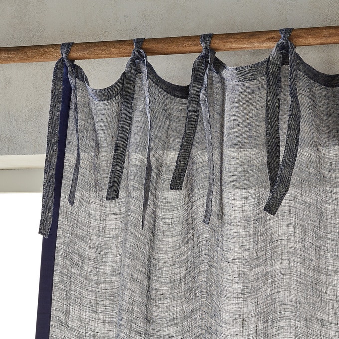 Gaze de lin à franges / Voilage en lin chambray à nouettes/ Housse de coussin Madame Stoltz
