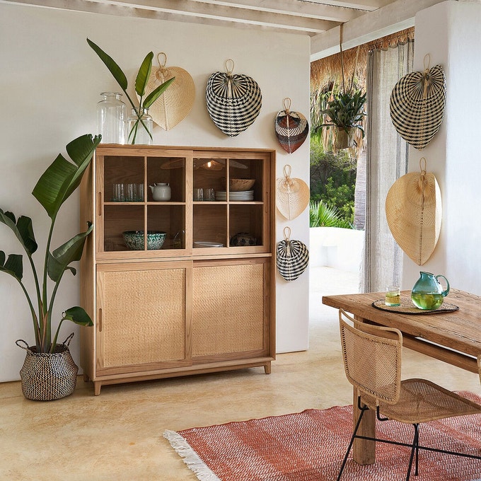 Coté matières, le bois et son aspect ultra chaleureux sont des valeurs sûres. Préférez-le brut ou patiné pour un esprit maison de vacances. Les matières comme le rotin ou le jute sont également idéales pour apporter instantanément un air de vacances à un intérieur : tapis, suspension, poufs ou encore paniers, n’hésitez pas à en abuser !