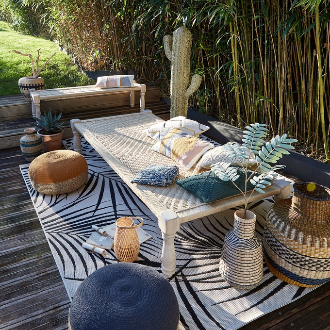 Charpoy ou banc marocain, à vous de choisir ! L’un comme l’autre amèneront sur la terrasse ce parfum de voyage et d’artisanat si cher au style bohème. Intemporels, ils donnent du caractère à l’extérieur : on ne s’en lasse pas !