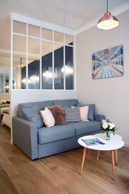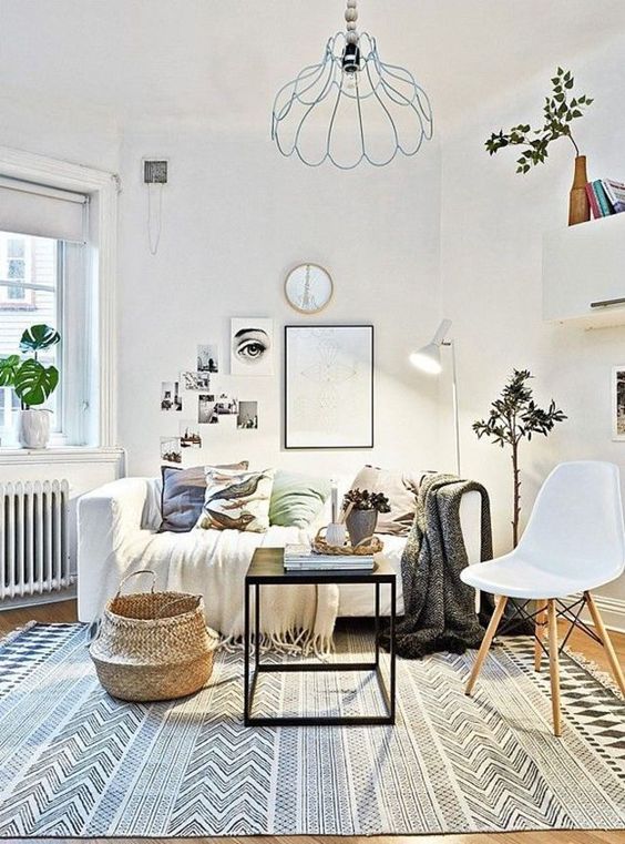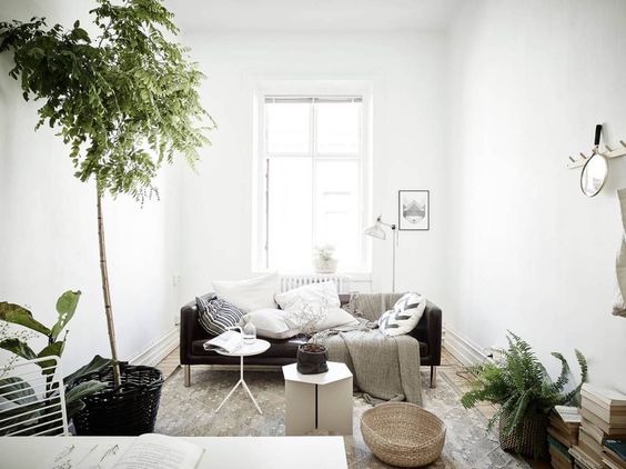 Il n’y a pas de secret, pour préserver la sensation d’espace dans une petite pièce, il faut éviter de la surcharger ! On s’inspire donc de la tendance minimaliste, en évitant d’accumuler des accessoires déco, particulièrement sur les murs. Pour rendre le lieu chaleureux et éviter qu’il ne paraisse vide, on mise sur une belle plante, un tapis ou encore de jolis coussins.