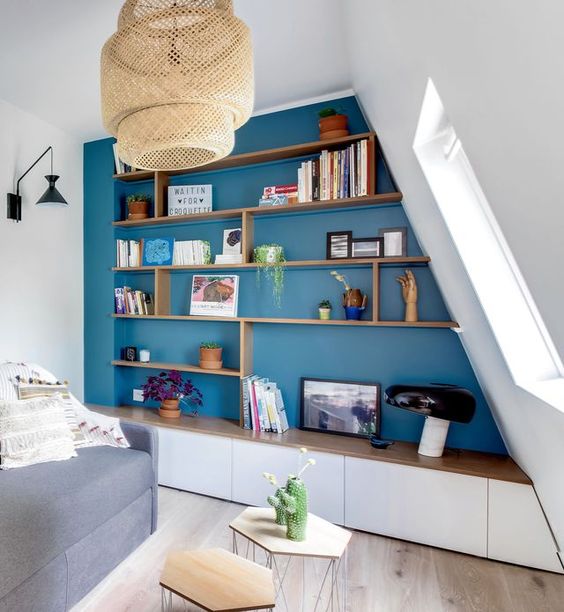 Pour la déco d’un petit salon, on évite de disposer des meubles superflus qui viendraient saturer l’espace. misez donc sur des rangements muraux plutôt que les meubles pour libérer l’espace au sol, et favoriser les rangements sur mesure qui se fondent dans le décor.