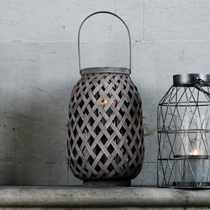Les lanternes sont une des idées incontournables pour décorer sa terrasse. On la choisi en matière naturelle, comme celle-ci en bambou grisée, et on dispose des bougies à l’intérieur.