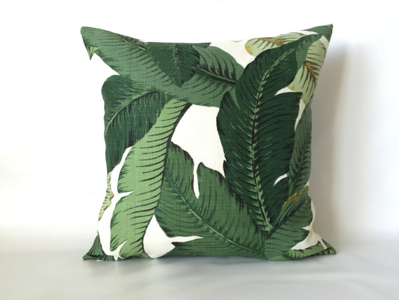 Ambiance tropicale avec ce joli coussin au motif végétal. Grâce à son tissu spécial extérieur, on se concocte un petit coin douillet pour profiter du soleil !