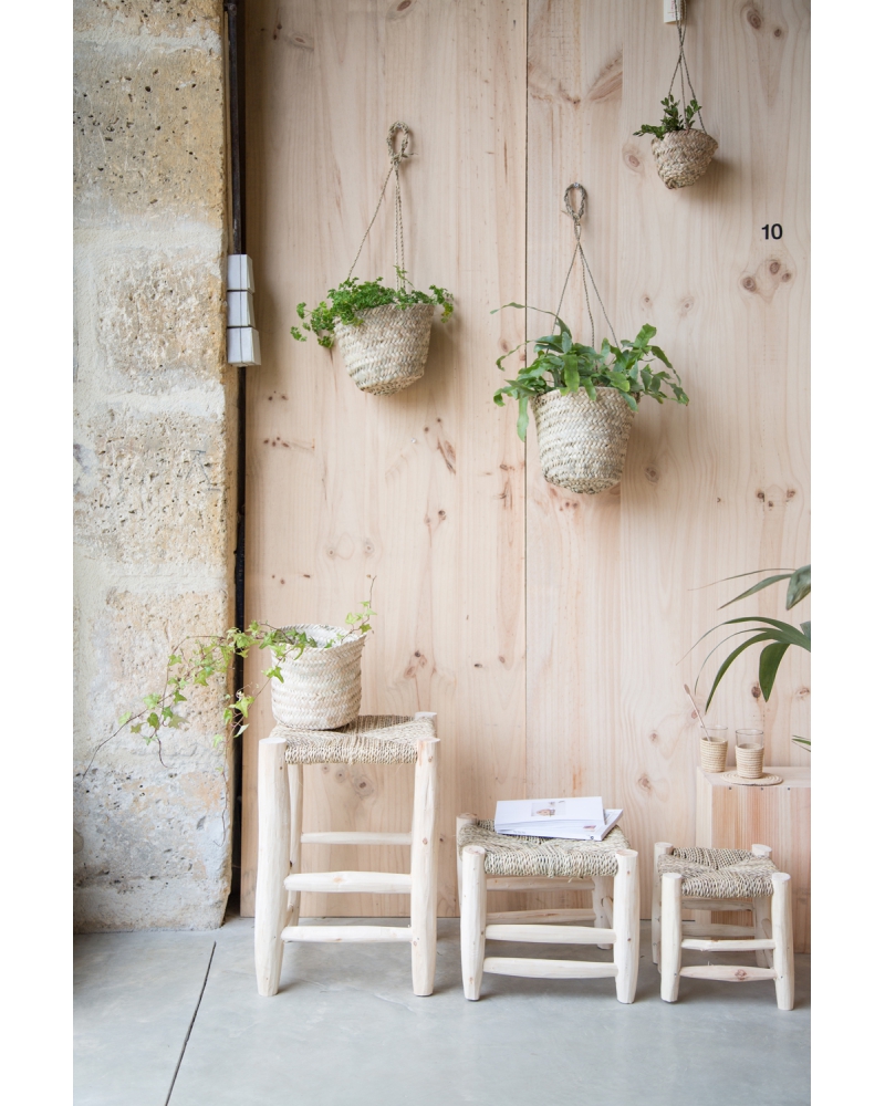 tabouret en bois et paille tressée, les petites emplettes, 39 euros.