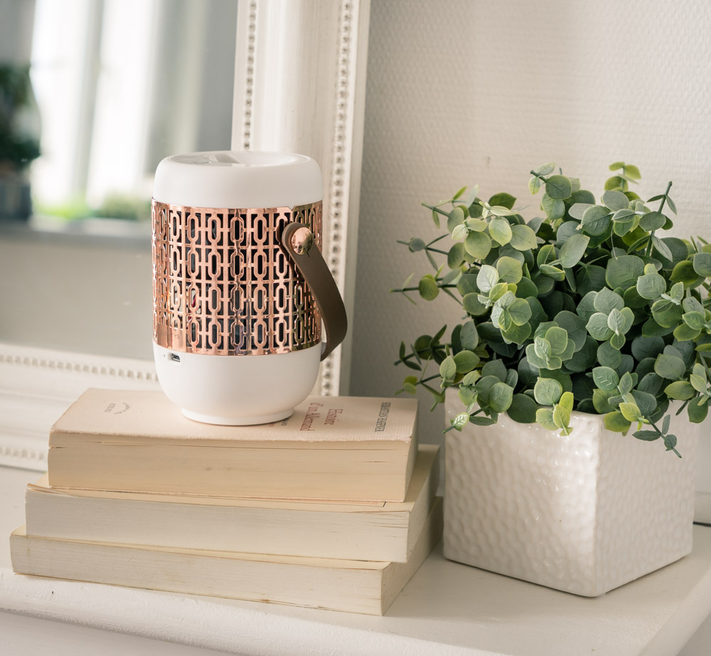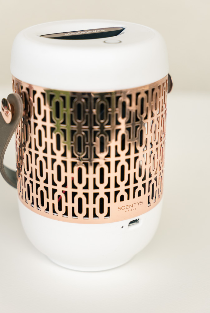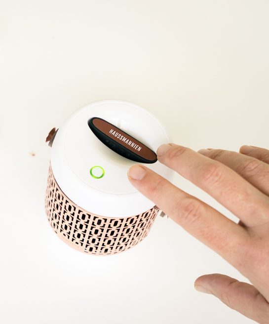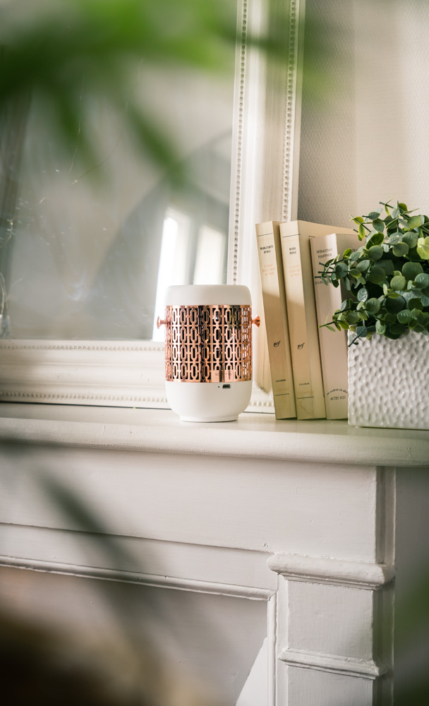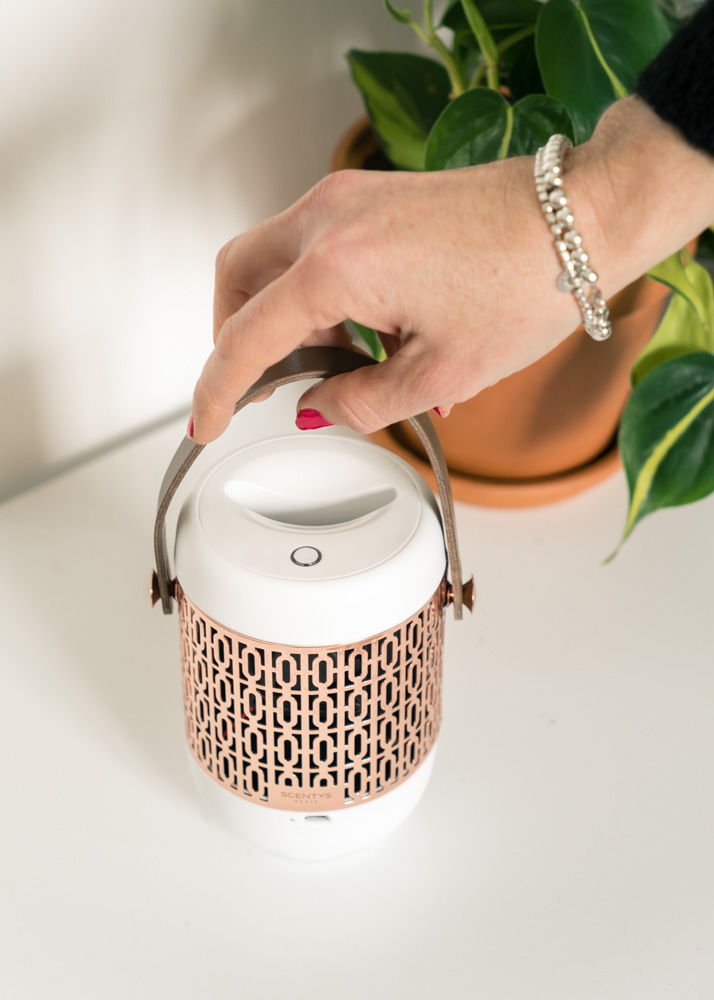 Avec sa petite lanière en cuir amovible et interchangeable, on peut le déplacer aisément pour le positionner sur la table basse le temps de la diffusion par exemple, ou encore pour le faire voyager dans la maison. On peut ainsi en profiter dans les pièces à vivre, mais aussi le placer dans une entrée, une salle de bain ou une chambre. J’aime par exemple beaucoup l’idée de le placer dans la chambre d’amis pour accueillir mes invités. Le diffuseur a 20 h d’autonomie et se recharge par micro USB. Pratique pour ceux qui comme moi détestent les fils qui trainent :)