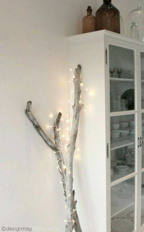 Incontestablement le DIY branche d’arbre le plus facile et rapide. Il vous suffit d’enrouler une guirlande lumineuse autour d’une jolie branche, et on obtient une ambiance féérique !