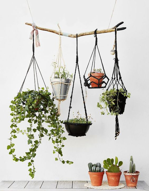 DIY branche d’arbre pour suspendre les plantes